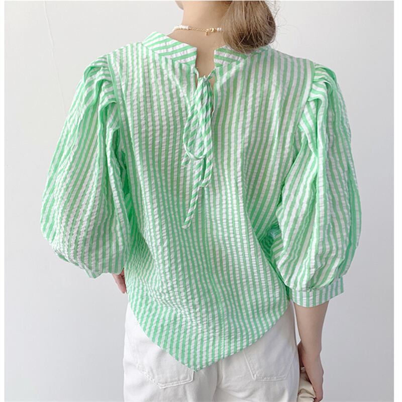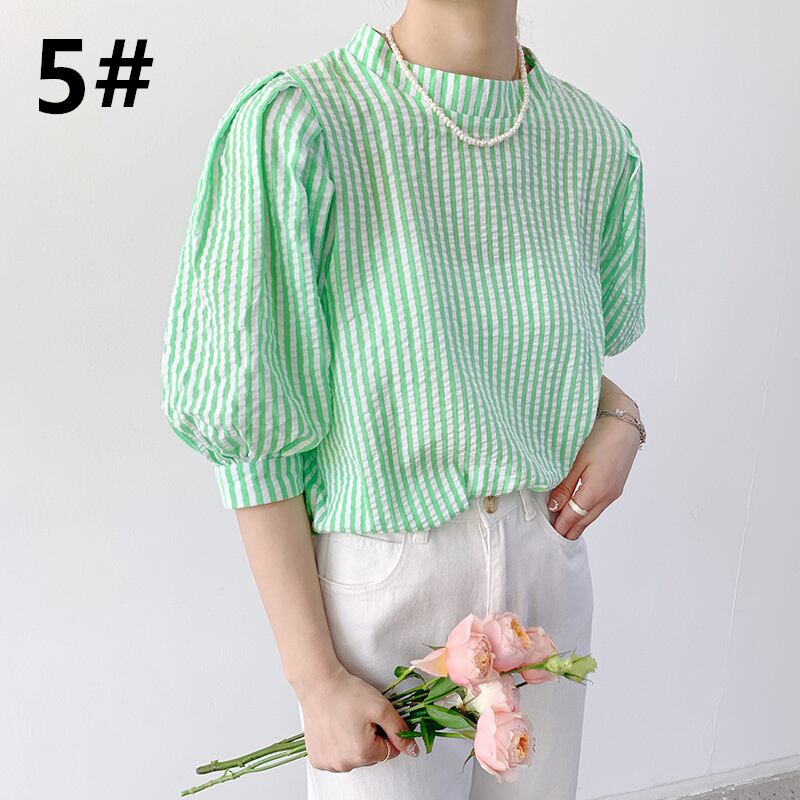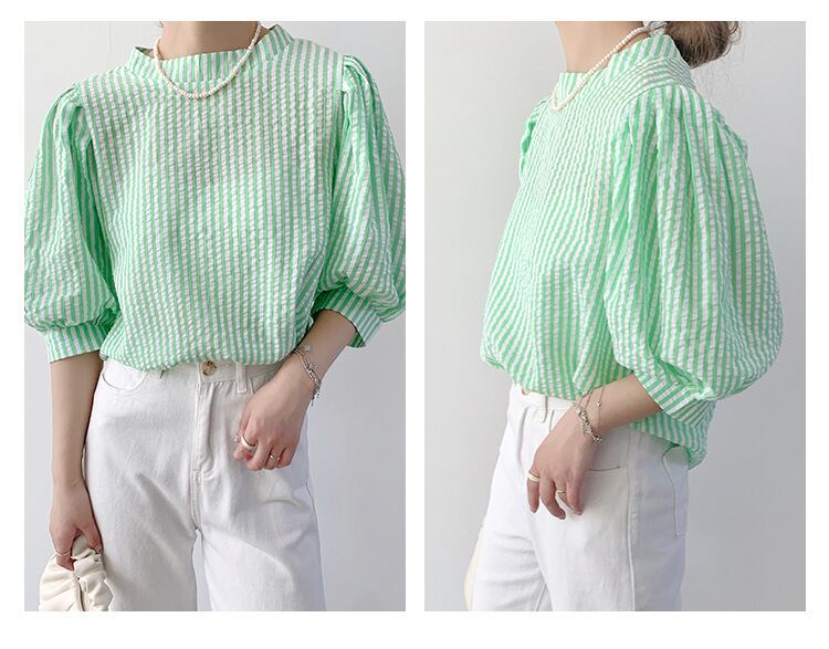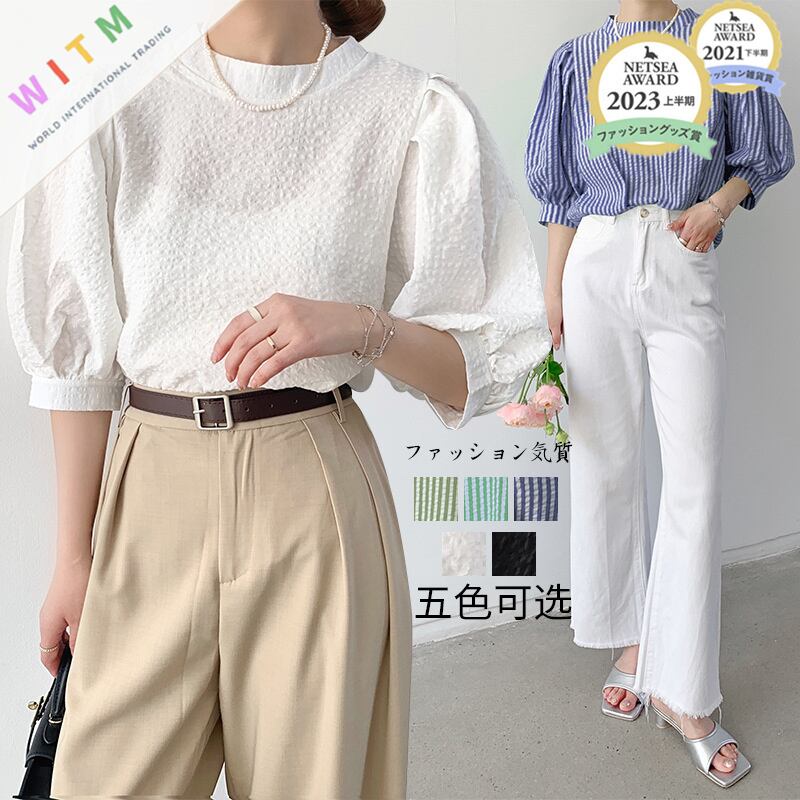 トップス ラウンドネック 七分袖 体型カバー フレア袖 レディース