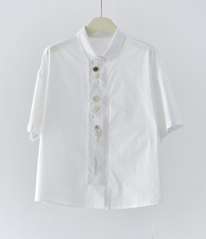 トップス レディース シャツ ブラウス Tシャツ 5色 刺繍 カジュアル 短袖 2025春夏新作