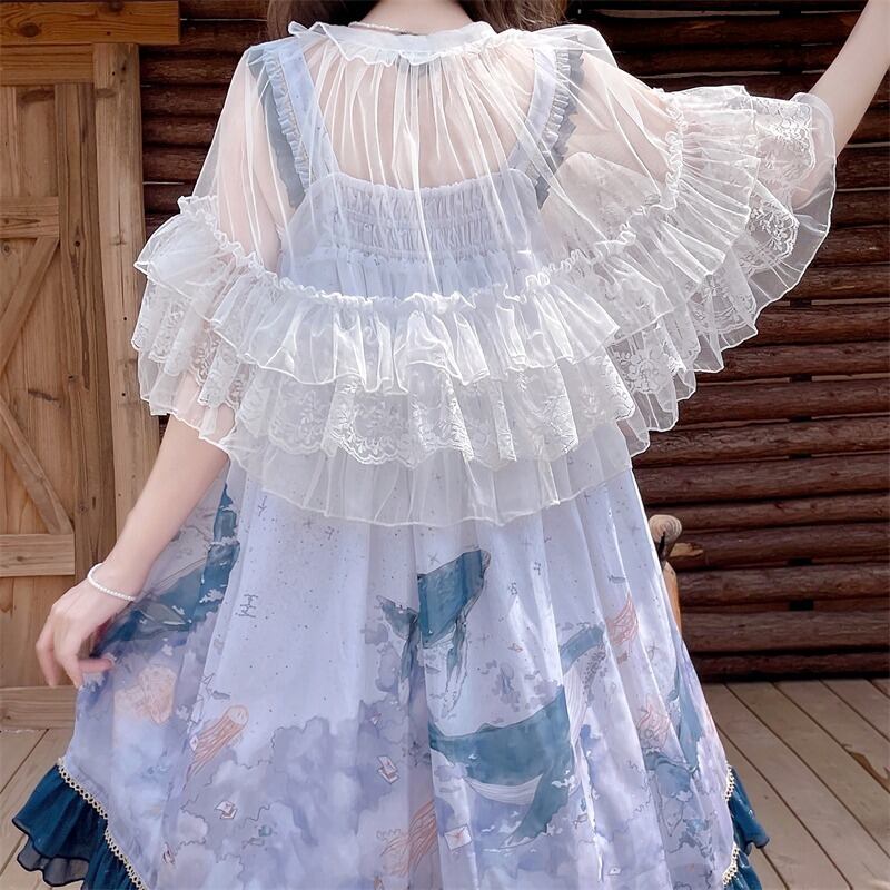 ボレロ トップス マント ショール レース シースルー レイヤード フリル レディース