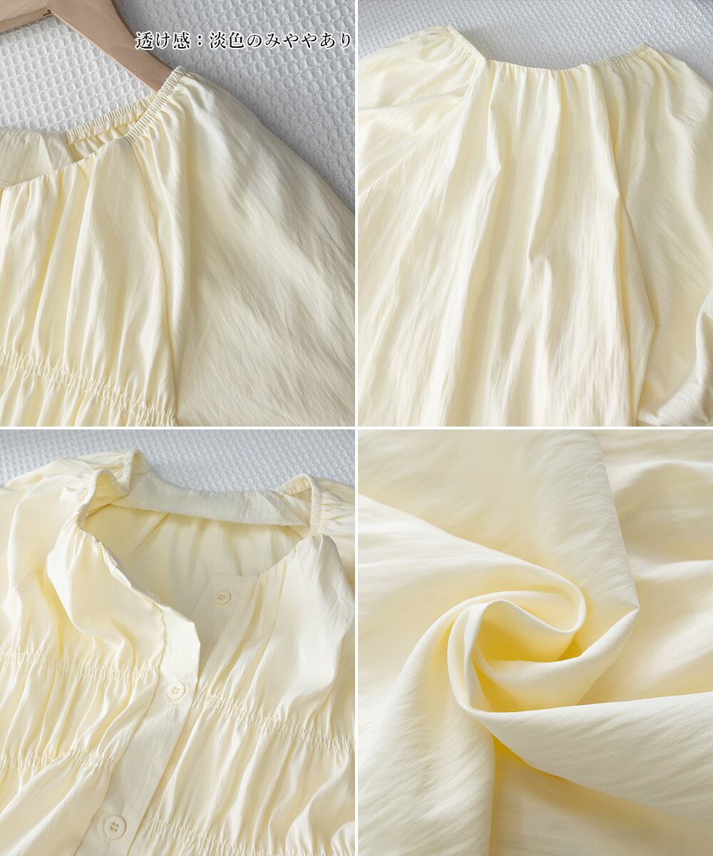 女性らしさが際立つフェミニンなシャーリング半袖ブラウス