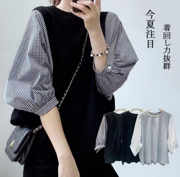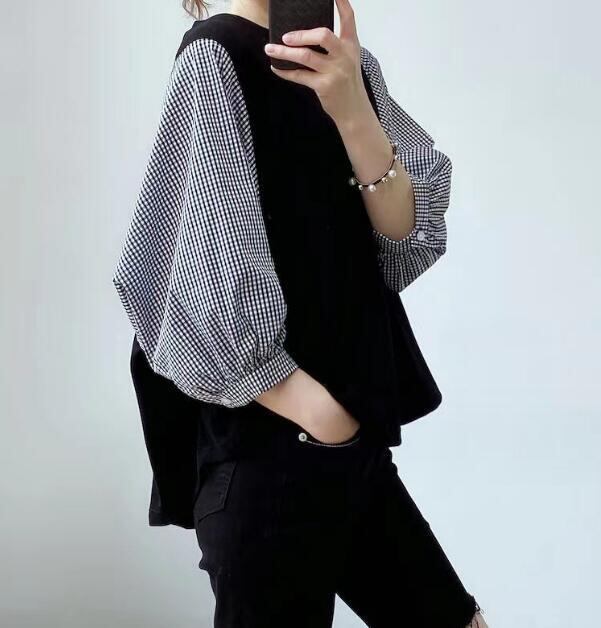 トップス★気質★ゆとり★長袖★配色tシャツ★韓国ファッション★レティース用上着★ラウンドネック