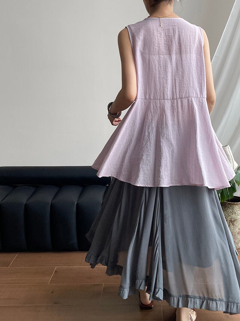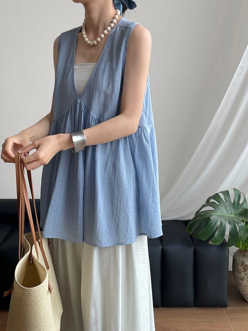 トップス レディース シャツ ブラウス ベスト 3色 韓国風 ノースリーブ 2025夏新作