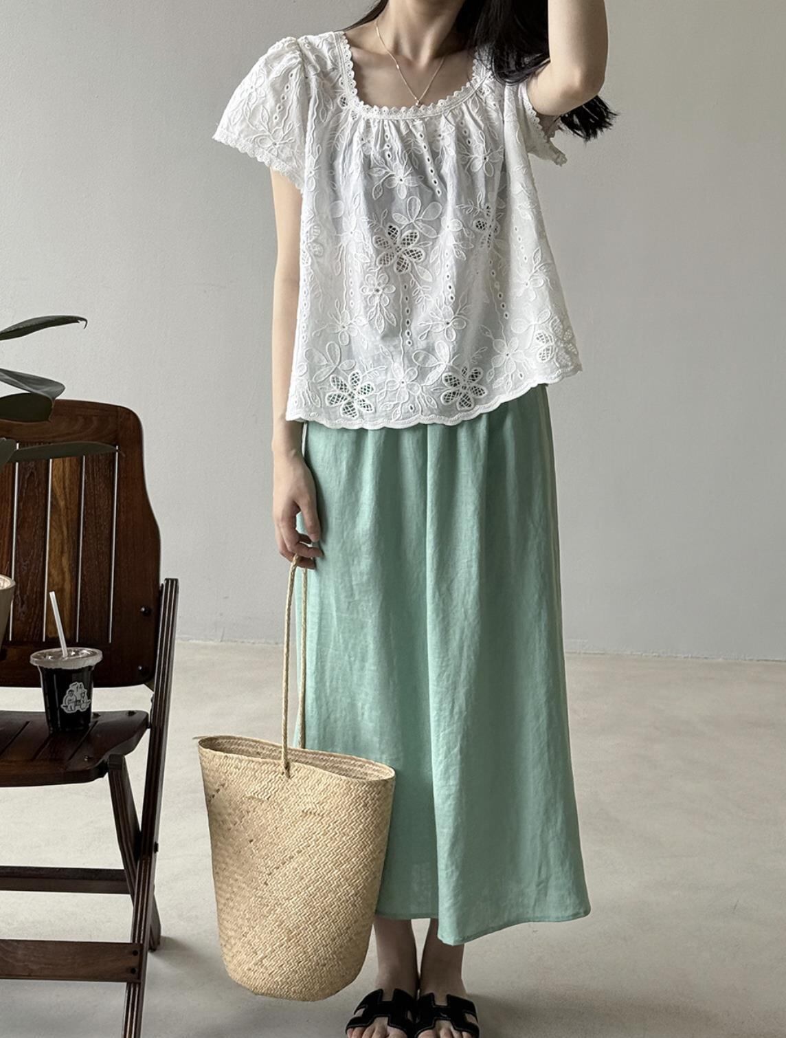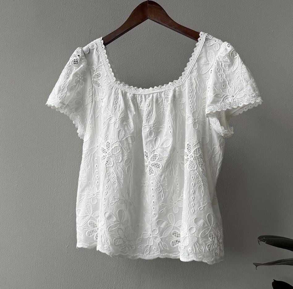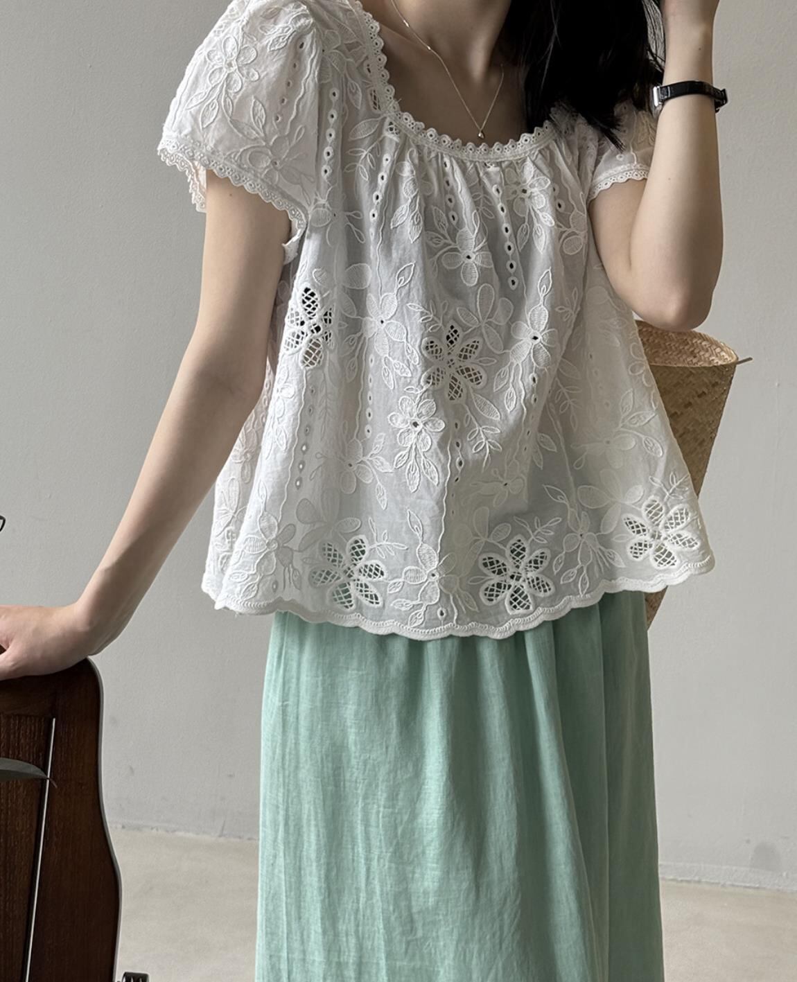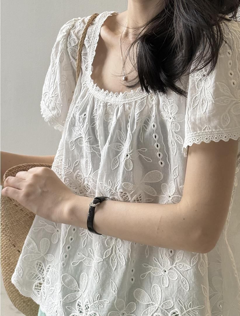 トップス レディース シャツ ブラウス 刺繍 通勤 スクエアネック 短袖 2025夏新作