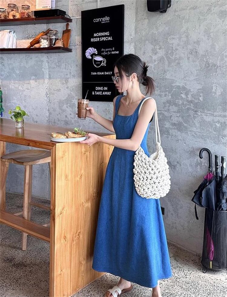 本当に早い者勝ちです デニムノースリーブワンピース 2025年夏 大人エレガントロング丈