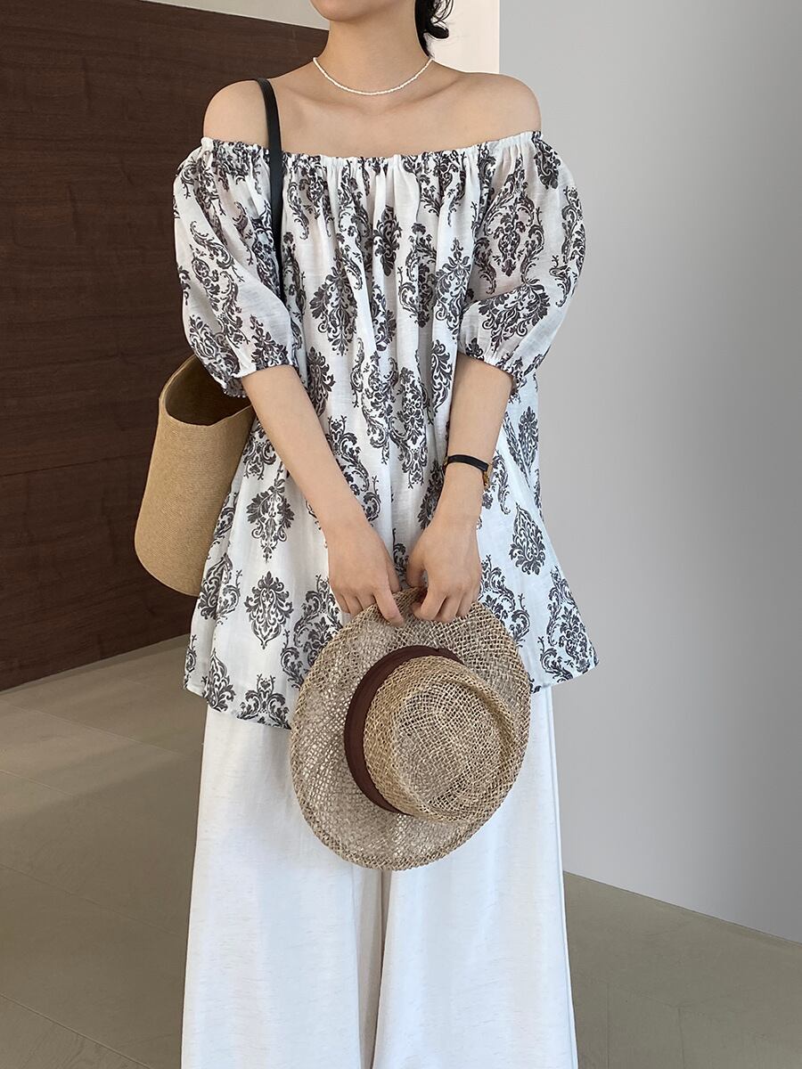 トップス レディース シャツ ブラウス 3色 プリント レベル フレンチ 2025春夏新作