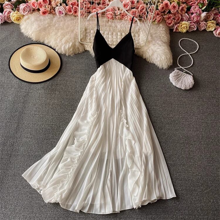 これからの時期に ストラップデザイン オープンバック ビーチリゾートワンピース フレアスカート