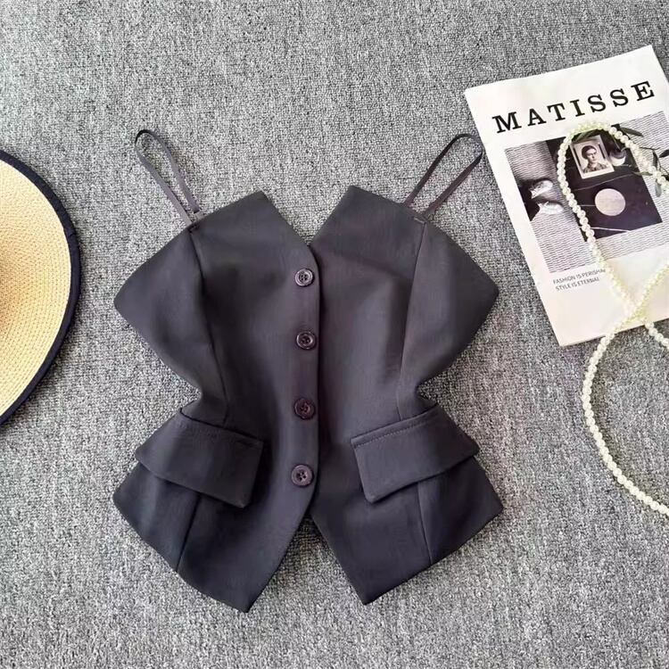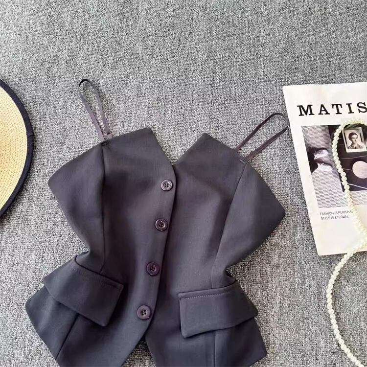 人気沸騰 ヴィンテージデザイン オフィスカジュアル ストラップ付きベストトップ 体型補正 袖なしインナー