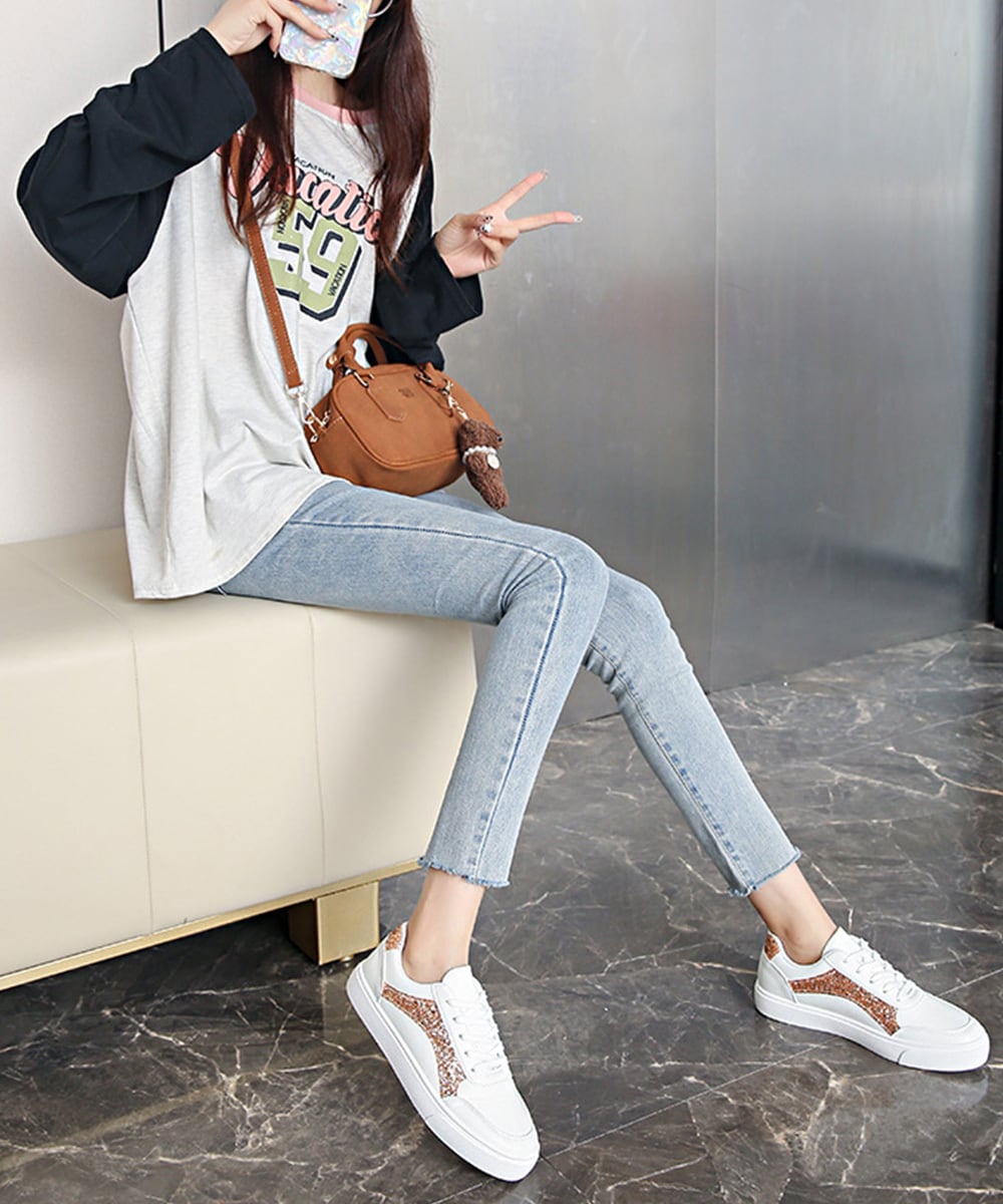 ローカットスニーカー スパンコール靴美脚