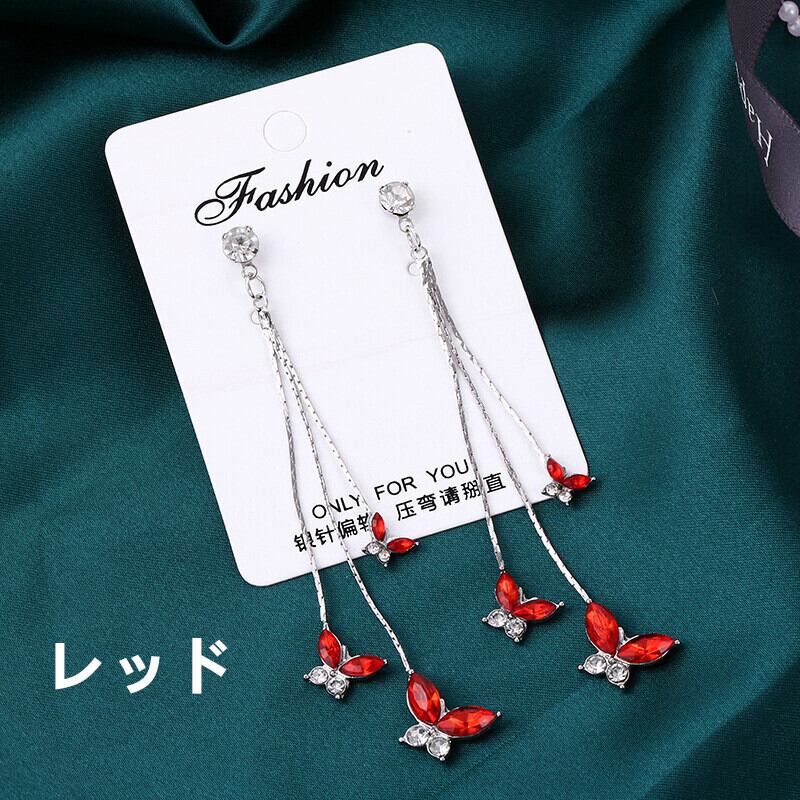 蝶々 ロングチェーンピアス キュービック ジルコニア 揺れる チェーンピアス ロングピアス 揺れるピアス