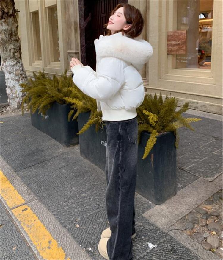 辣妹風 冬用 大毛襟 ダウン感 短款 厚手 パフコート 2025