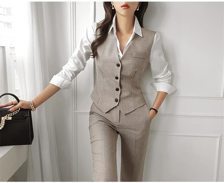 ウエストライン シェイプ オフィスウェア セット:ジャケット・ベスト・パンツ