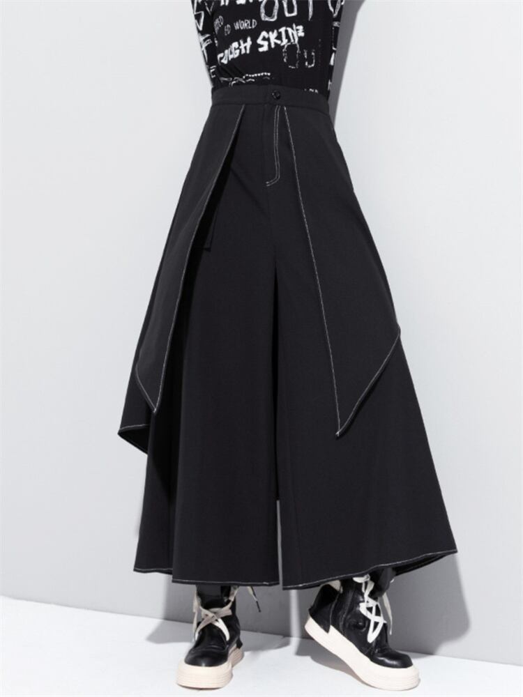 ゆったり丈 フェイクツーピース ワイドパンツ 2025欧米風カジュアル 大サイズ対応