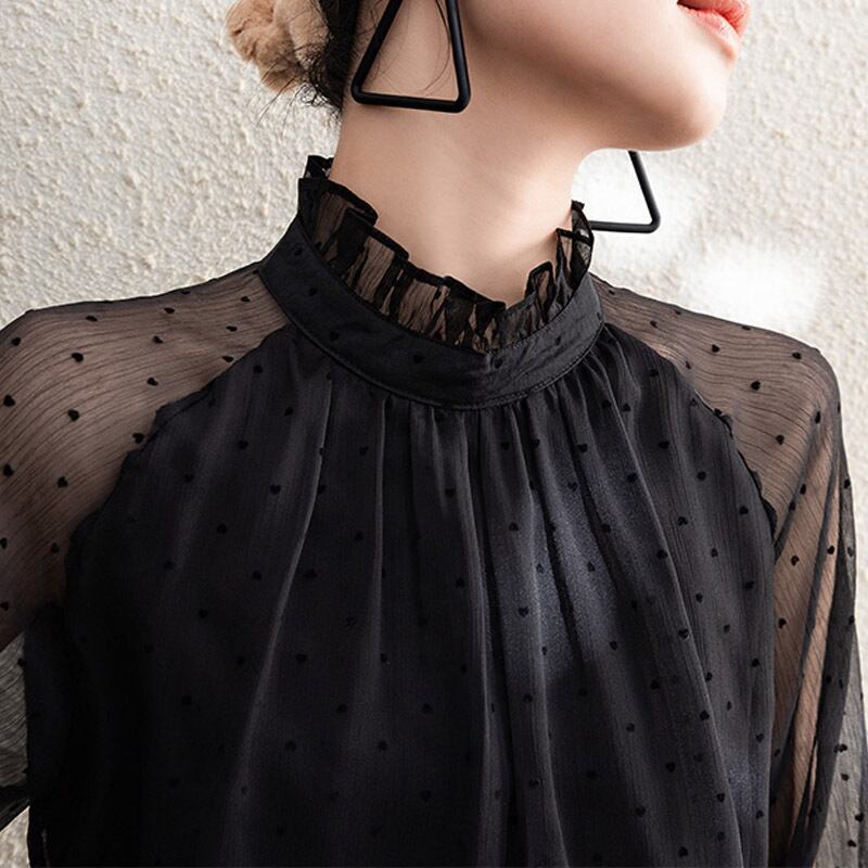 ブラウス 長袖ブラウス レディース トップス シフォンシャツ 透け感 フェミニン ドット柄