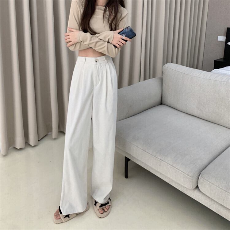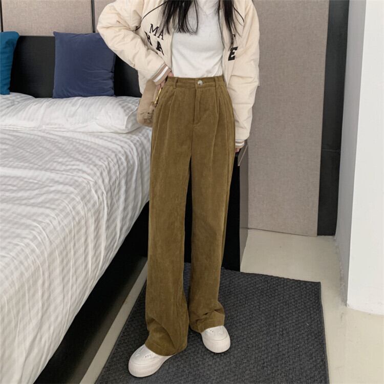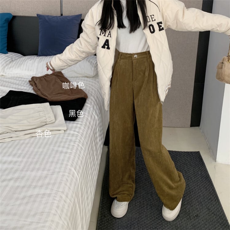 韓国ファッション コーデュロイ レトロ スリム オシャレ カジュアルパンツ 伸縮性のあるウエスト