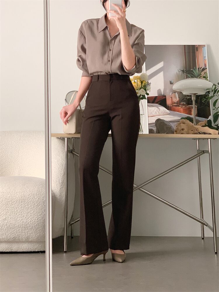秋冬 ロングパンツ ハイウエスト ストレッチ ブーツカット オフィスカジュアル