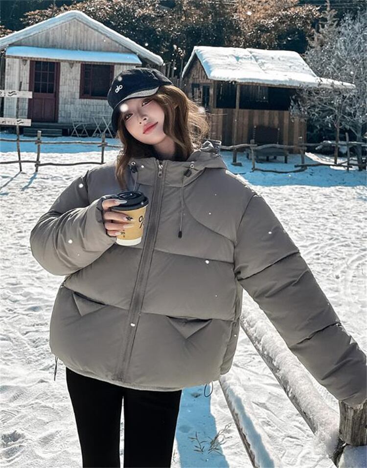 冬 厚手ルーズジャケット ダウン綿素材 フード付き 暖を保つ短身