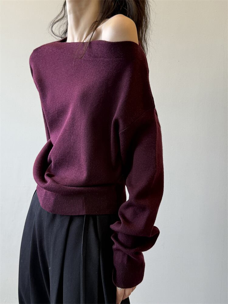 気品ある一字肩ニット ゆったりシルエットで着痩せ効果 日常からデートまで幅広く着用可能なトップス
