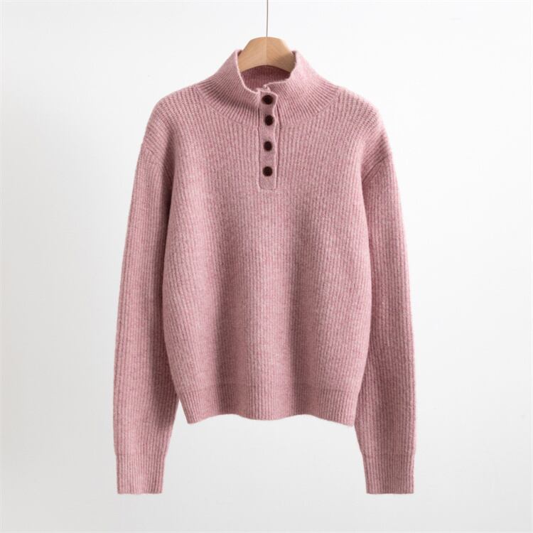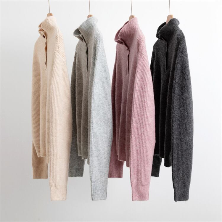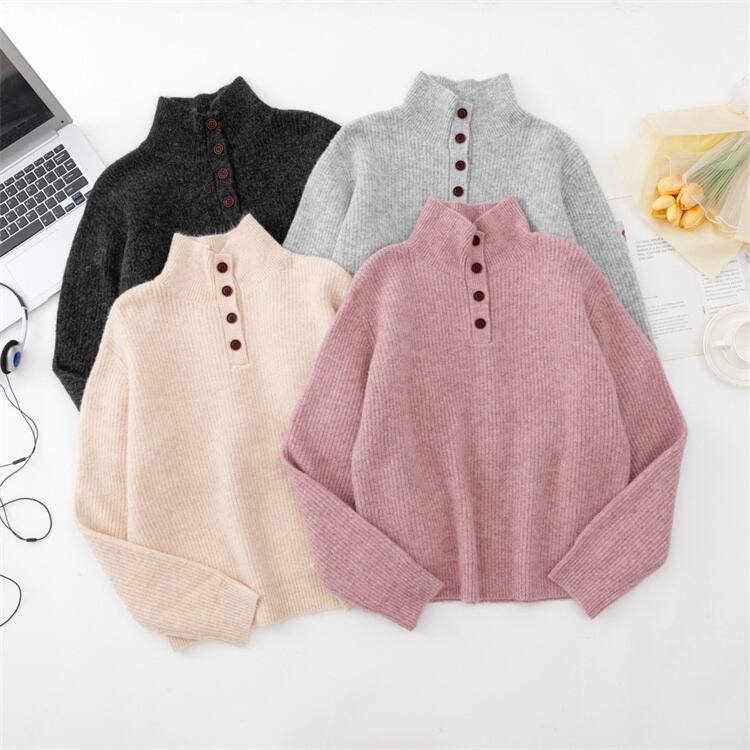 高衿とVネック切替デザイン ゆったりシルエットで体型カバー 保温性抜群の秋冬ニット 4色