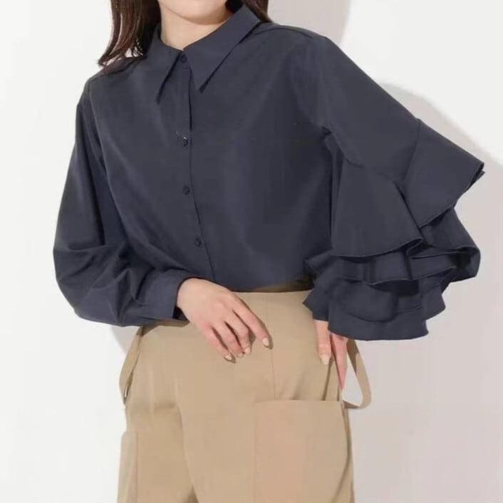 シャツ ブラウス トップス レディース 長袖シャツ フレア 気質 大人可愛い