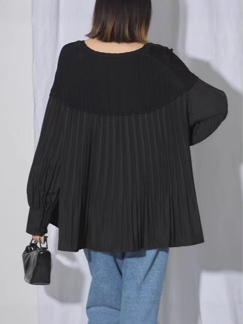 着るだけでおしゃれ見えする異素材切替ニットトップスです。