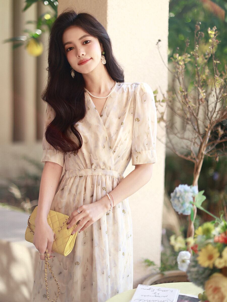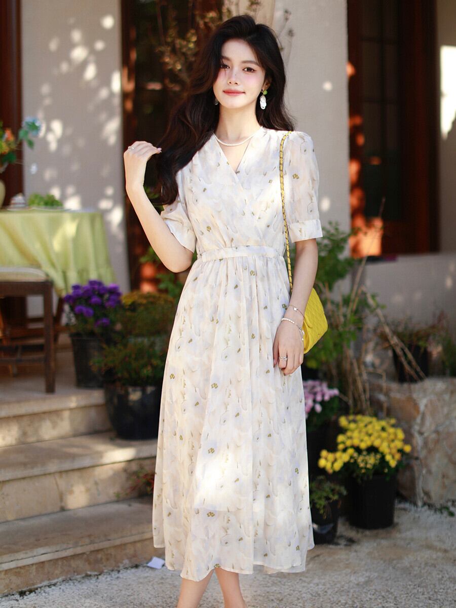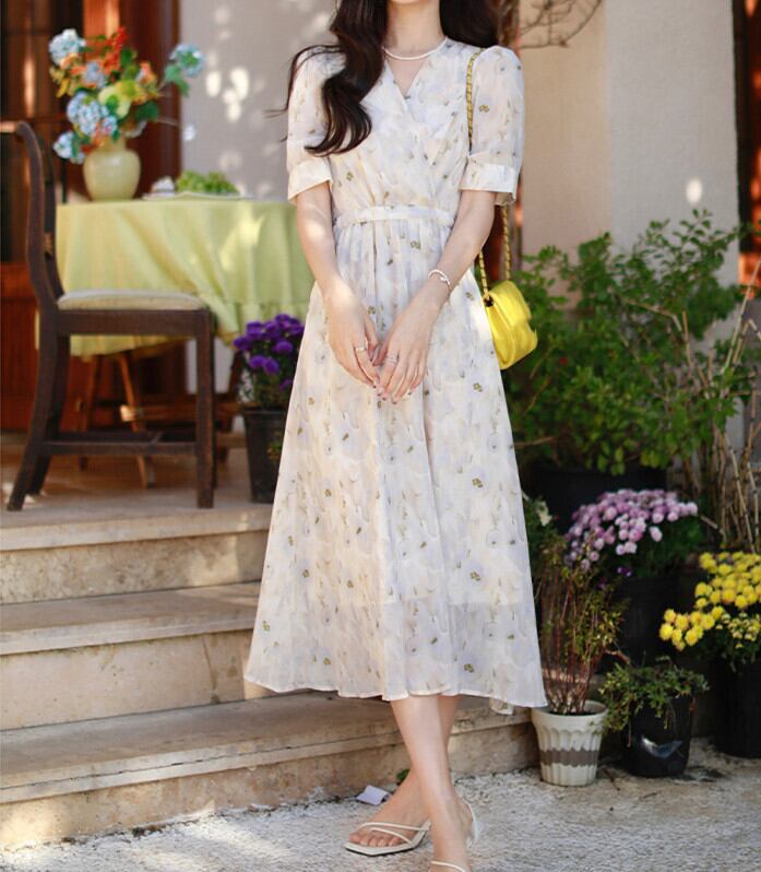 女性らしいエアリーなシルエットの華奢見えるシフォンワンピース。