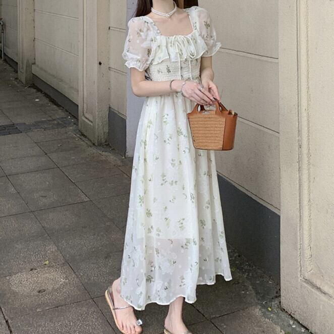 リゾートワンピース 花柄 ロングワンピ 体型カバー シースルー かわいい おしゃれ 半袖ワンピ レディース